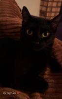 Note: He does not have a collar or a microchip. He is fully black, pretty skinny and has green eyes. His fur is short and he's known to be a little skittish and shy.